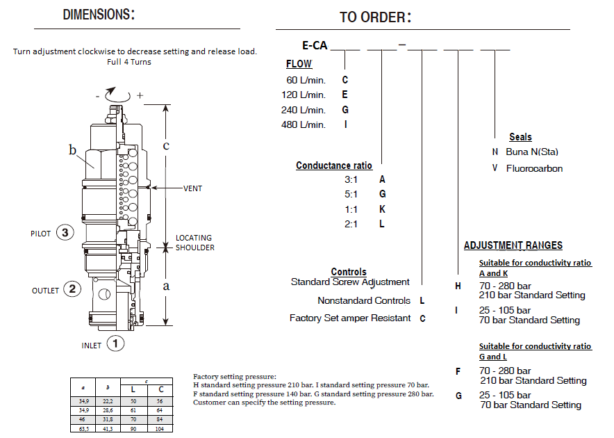 * The load pressure is 320 bar when setting pressure at 420 bar for CA*G, CA*L.