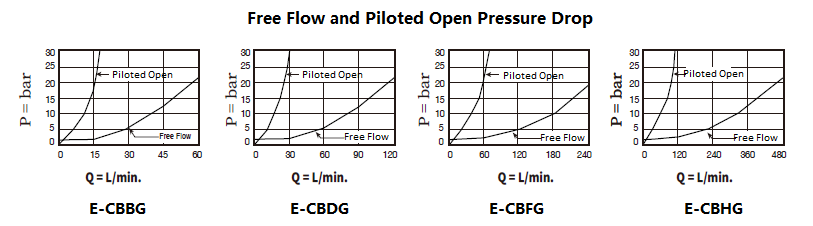 * Backpressure at port 2 adds to the effective relief setting at a ratio of 1 plus the pilot ratio times the backpressure.