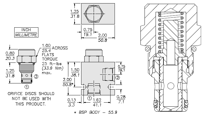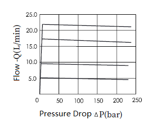 The E-FR10-20F is a screw-in, cartridge style, fixed orifice, pressure compensated, hydraulic flow regulator valve (restrictive type).